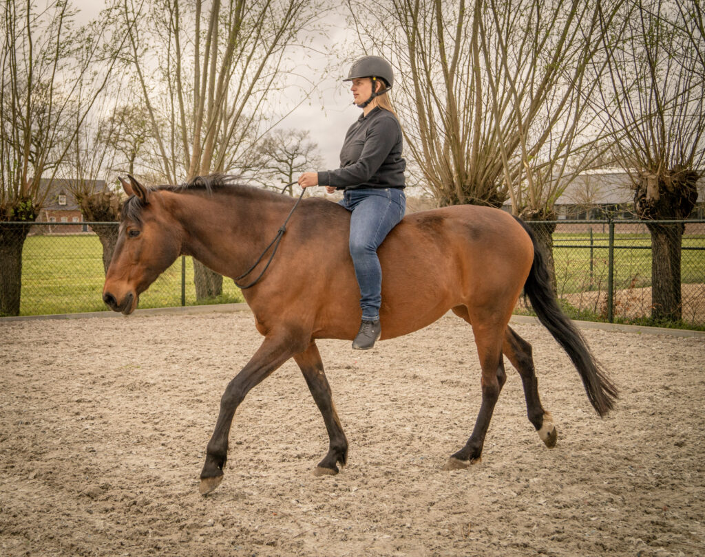 Tijdens het recht richten zal het paard zijn lichaam leren gebruiken. Zonder een bijzet teugel leer je het paard op een andere manier de rug te gebruiken.