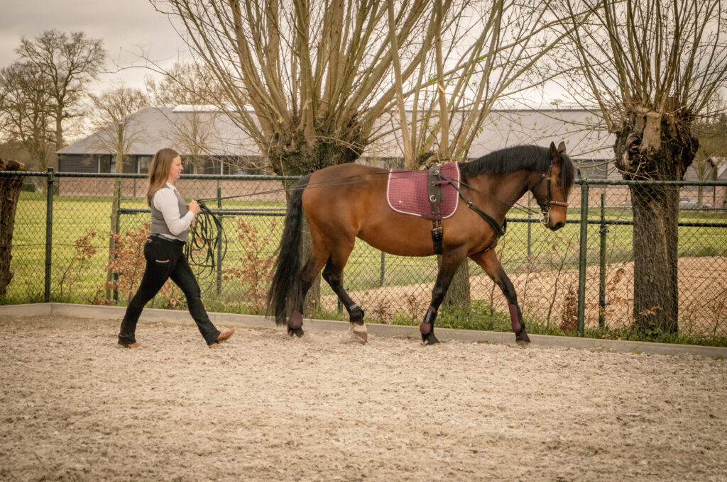 Met de dubbele lijnen zijn de hulpen die er voor het longeren zijn overbodig.